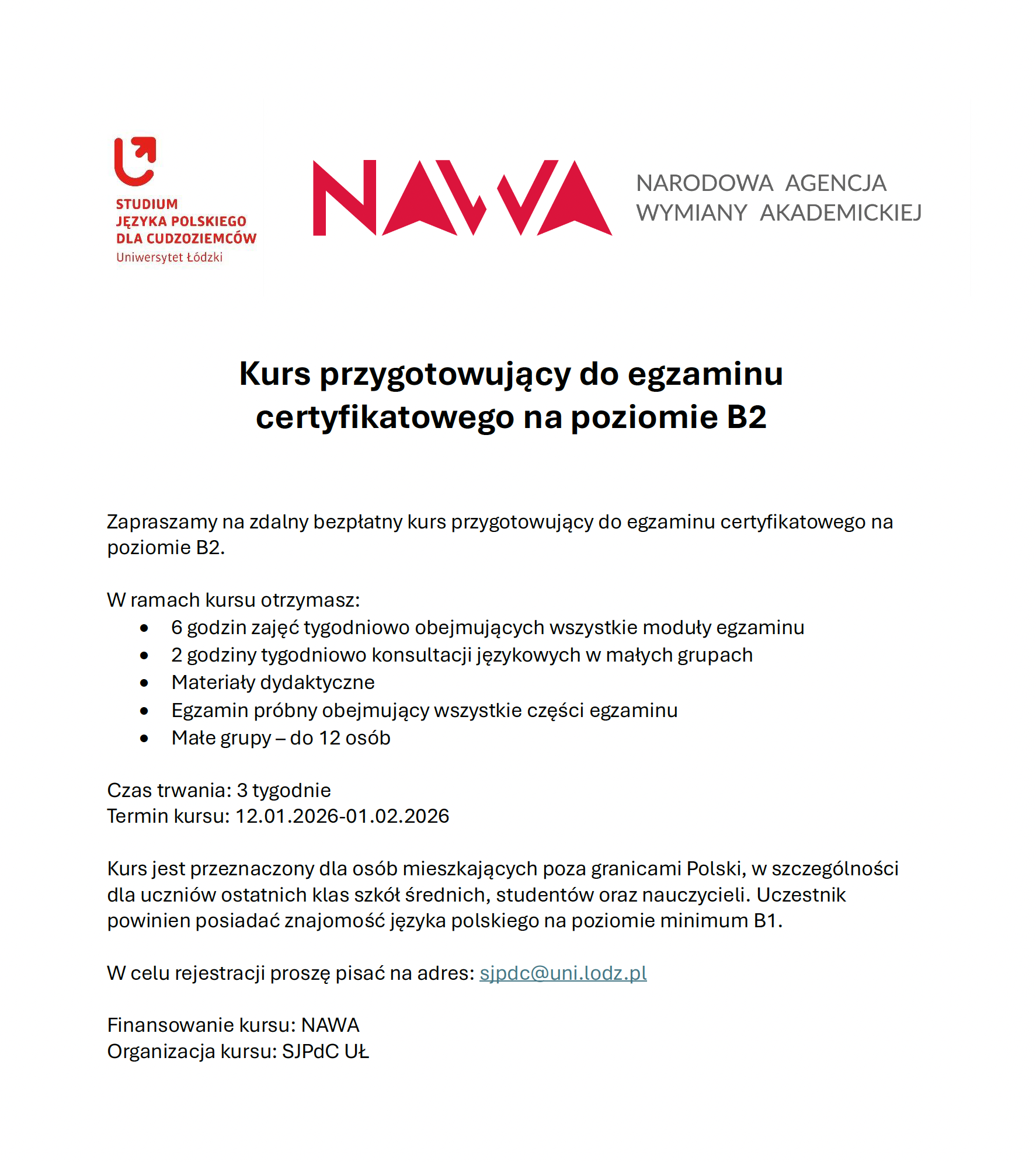 Zapraszamy na zdalny bezpłatny kurs przygotowujący do egzaminu certyfikatowego na poziomie B2.
